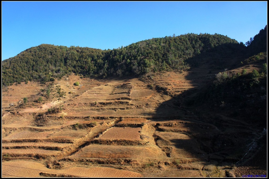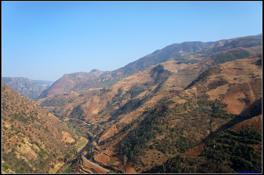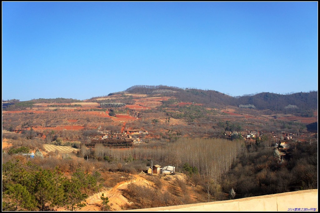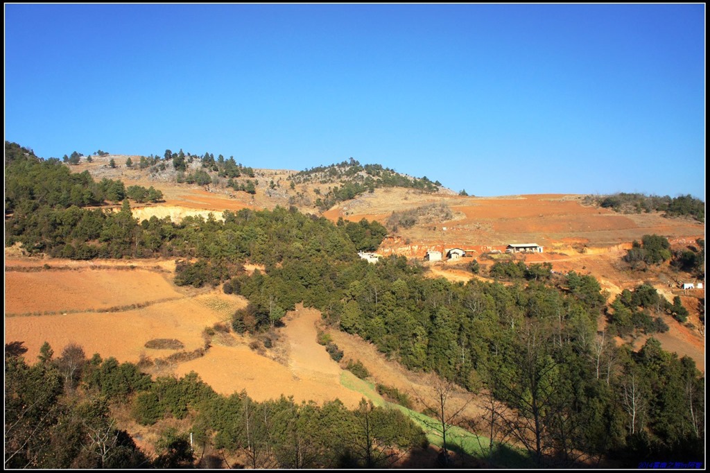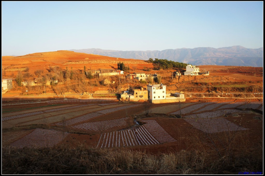 我們在元謀窯洞賓館用畢午餐後,先驅車返回昆明外圍,再從35縣道前往東川紅土地,沿途山路蜿蜒崎嶇,約傍晚18:00才抵達東川紅土地之「螺絲灣」,經短暫停留觀賞後,即續往「瓦梁房子」、「樂譜凹」二景點,而此時正逢日落西山(約18:25),雖然景色秀麗,但因光線不足及逆光,拍照效果不易呈現視野所見,相當可惜。之後,我們入住2013年剛開幕之東川紅土印象賓館,房間簡潔乾淨,戶外還有露台,而今晚星光璀璨、銀河閃爍,我和小夢在露台上捕捉這片刻的美好,即趕快進入夢鄉,儲備明天早起觀賞日出的體力。
