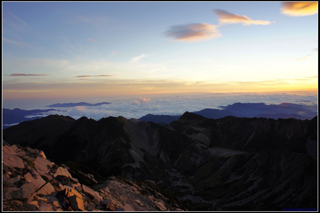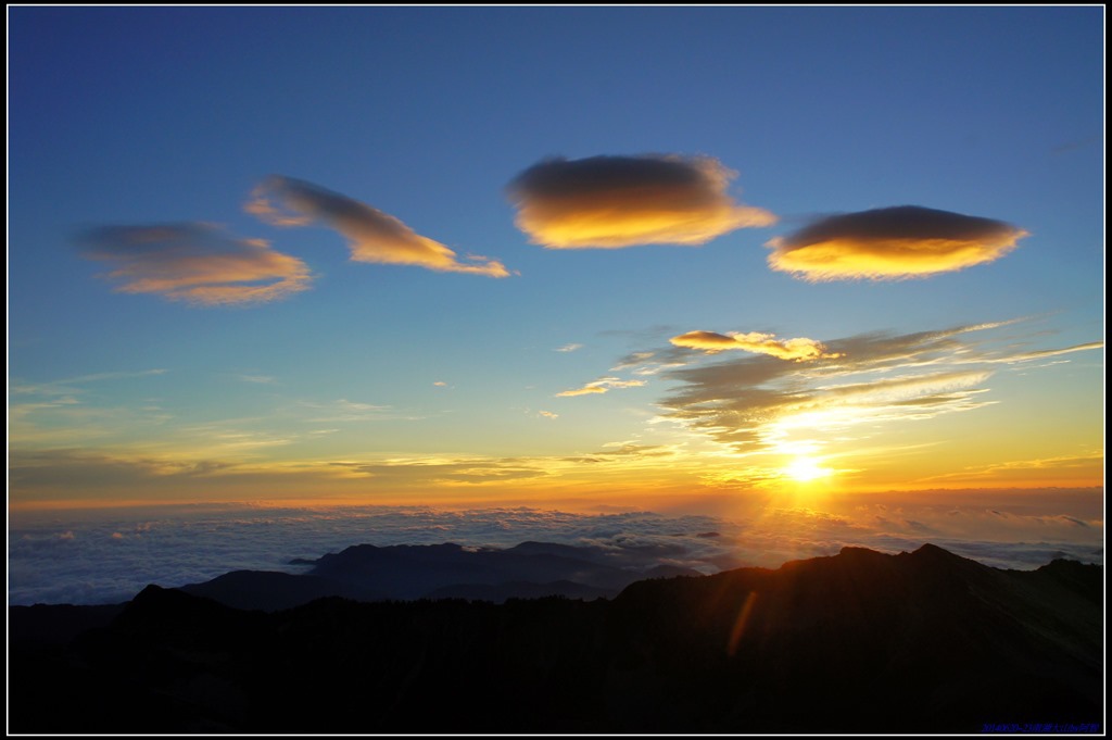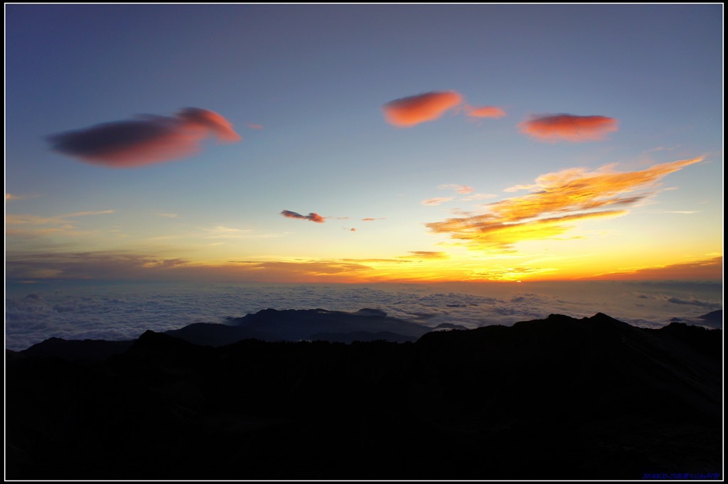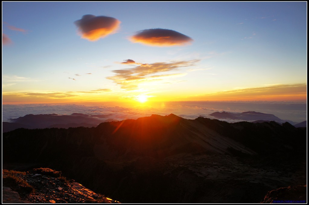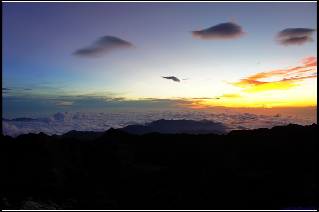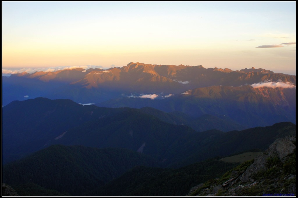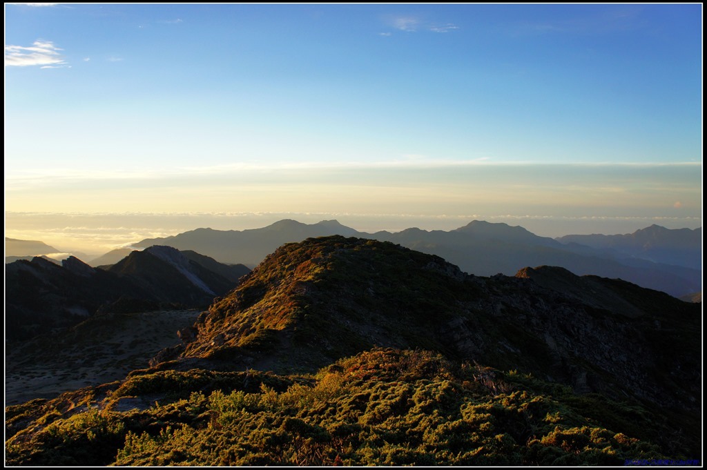 日出時分,南湖東峰方向之晨曦雲海光影變化