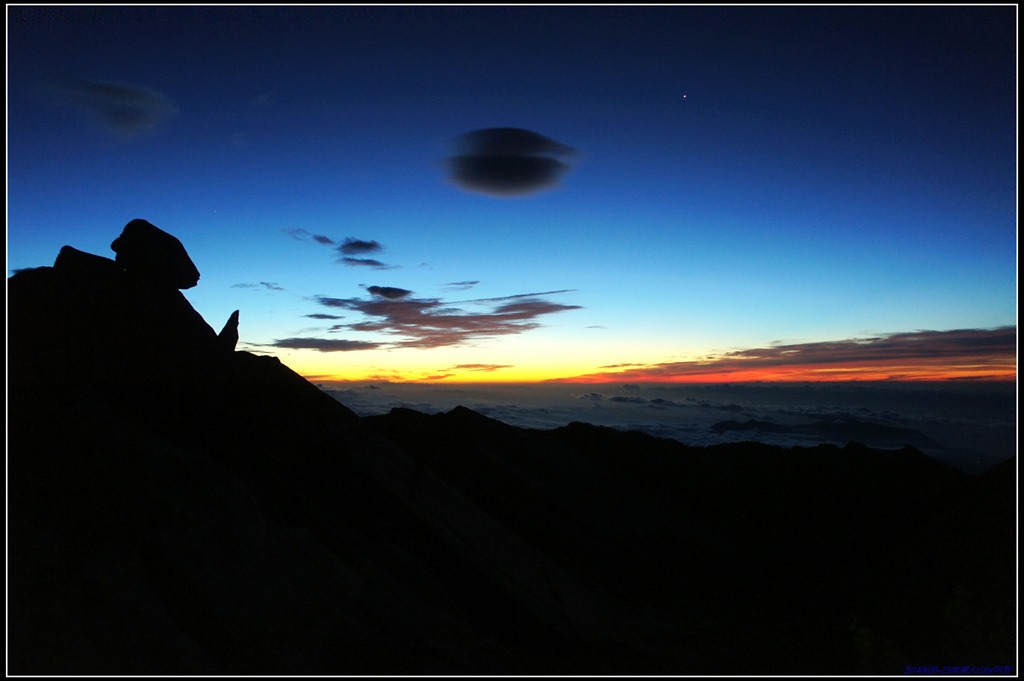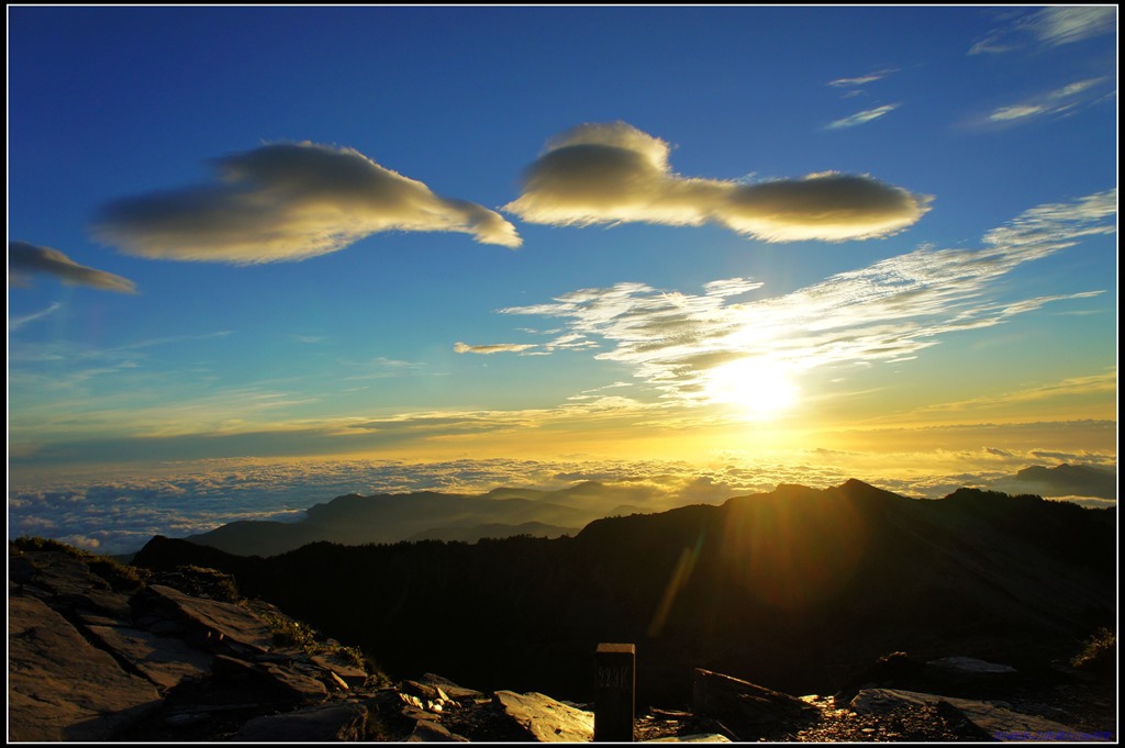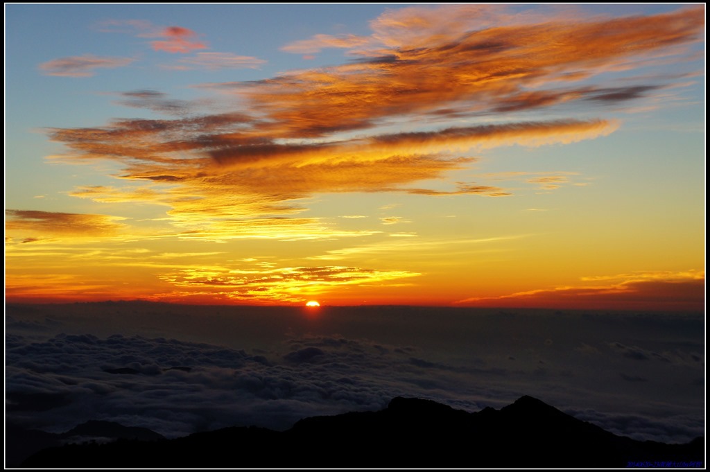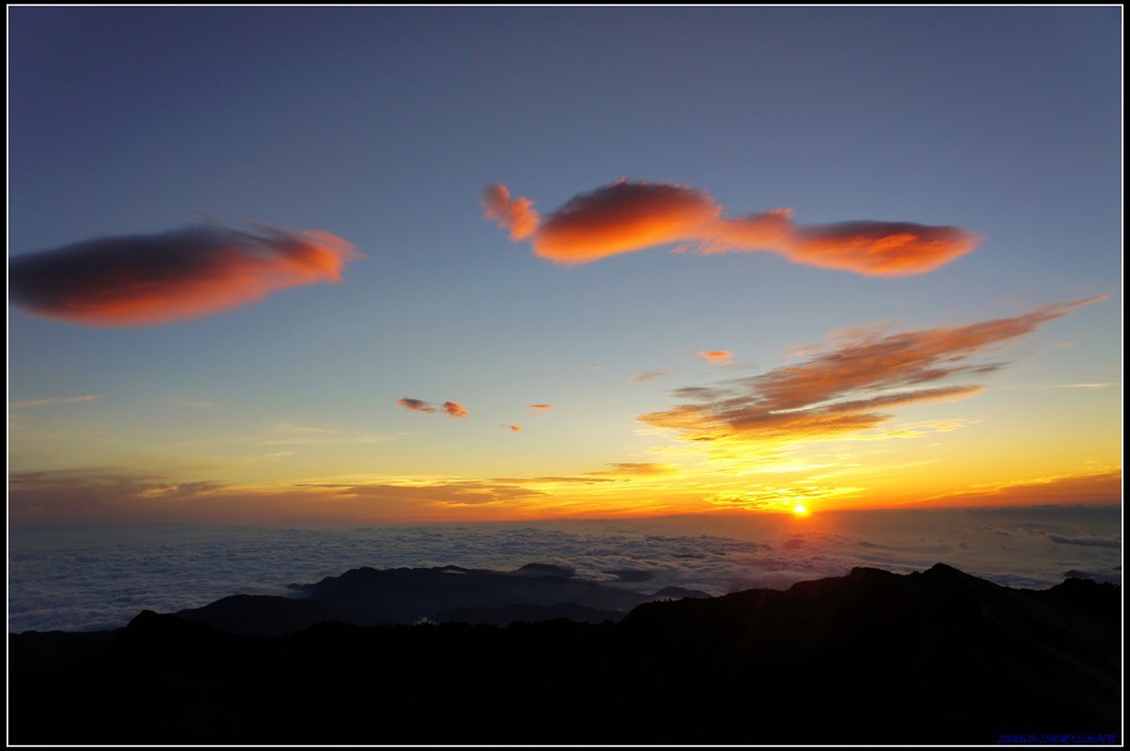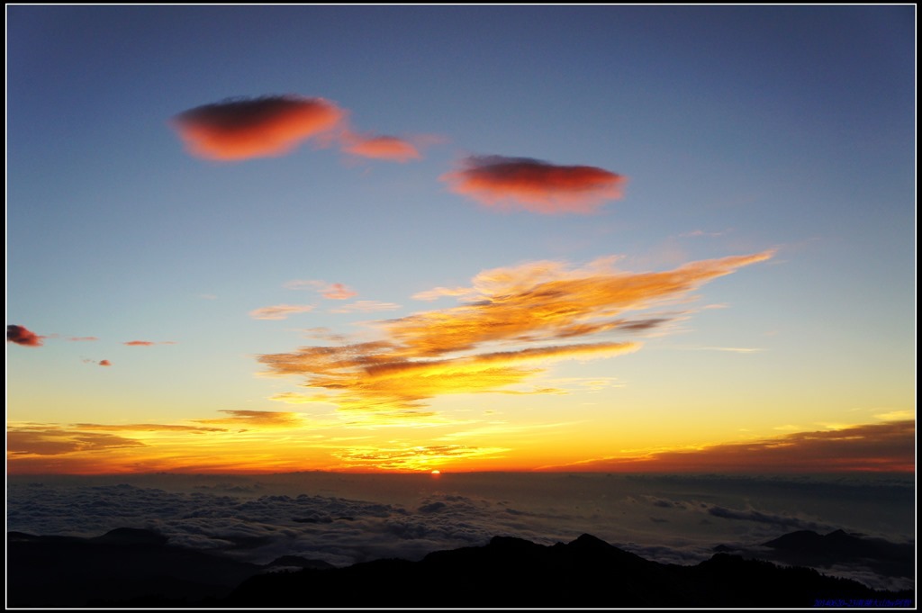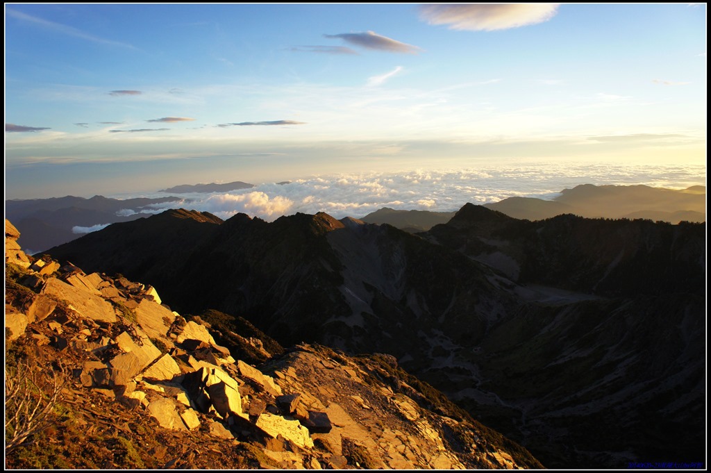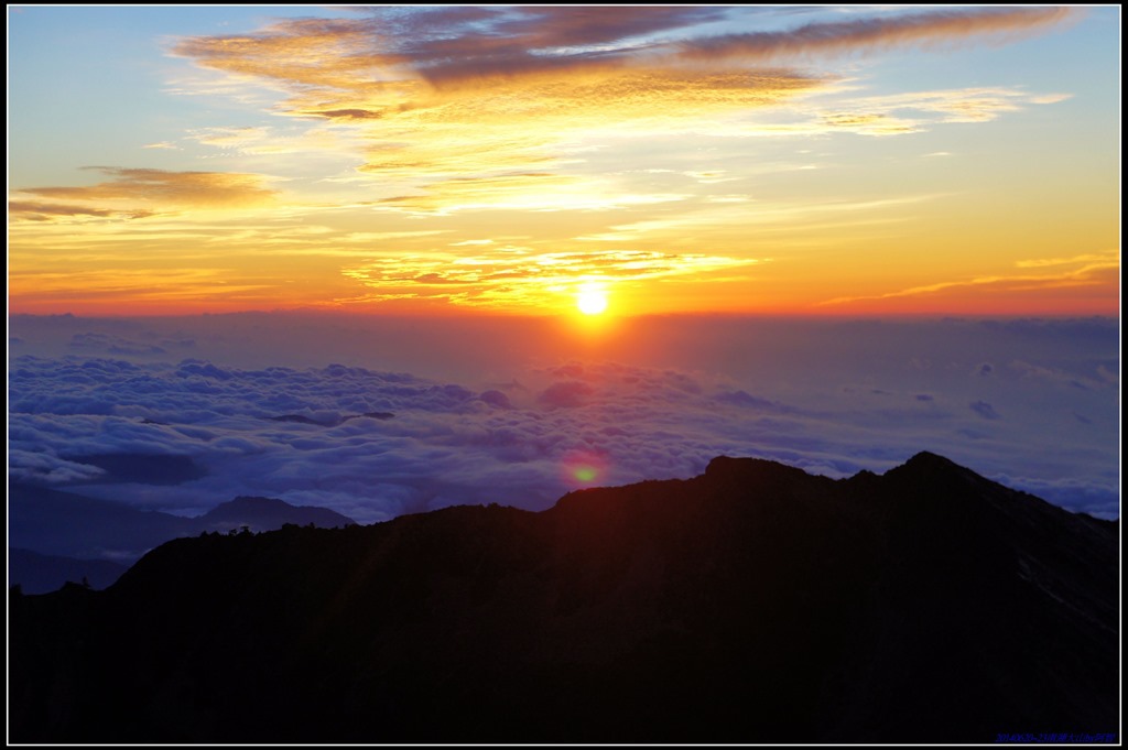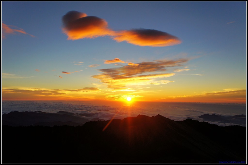 日出時分,南湖東峰方向之晨曦雲海光影變化