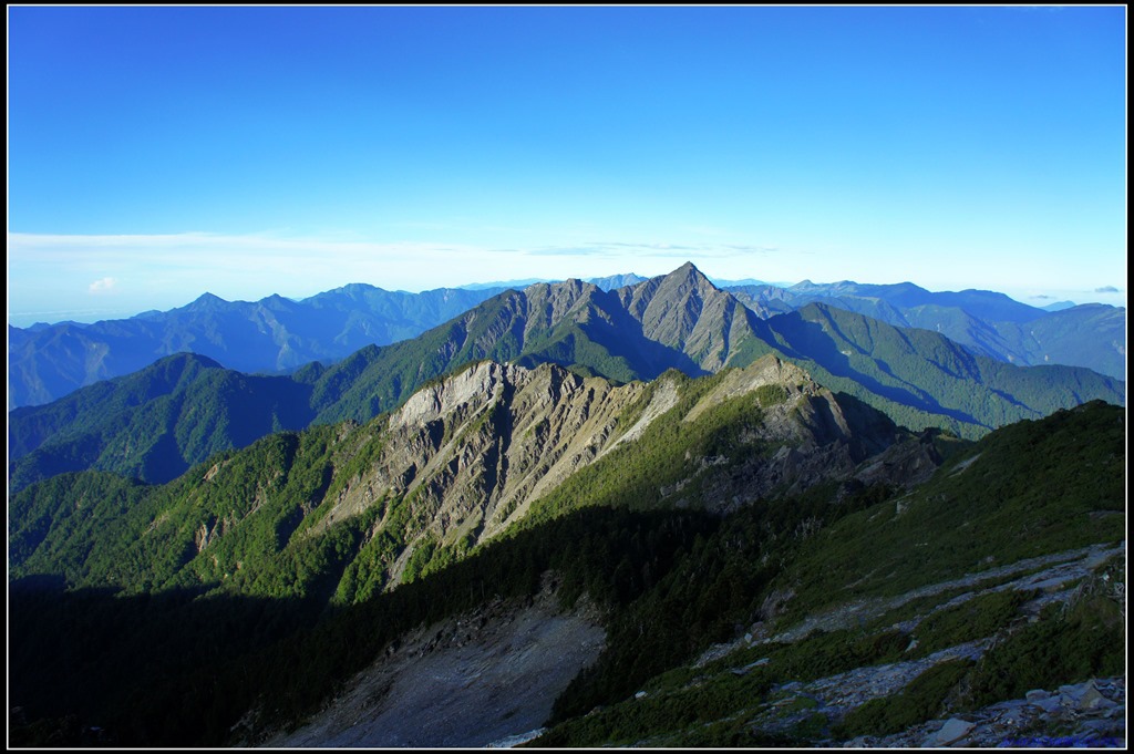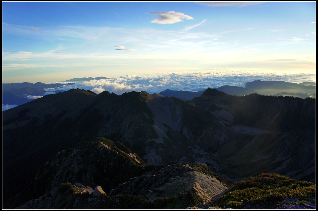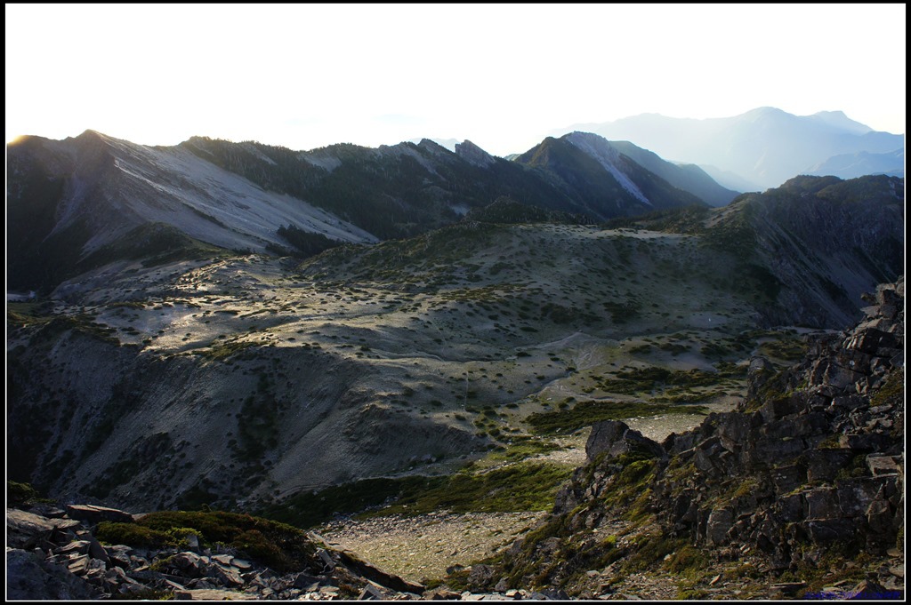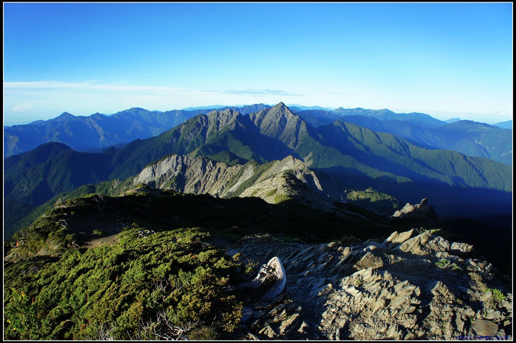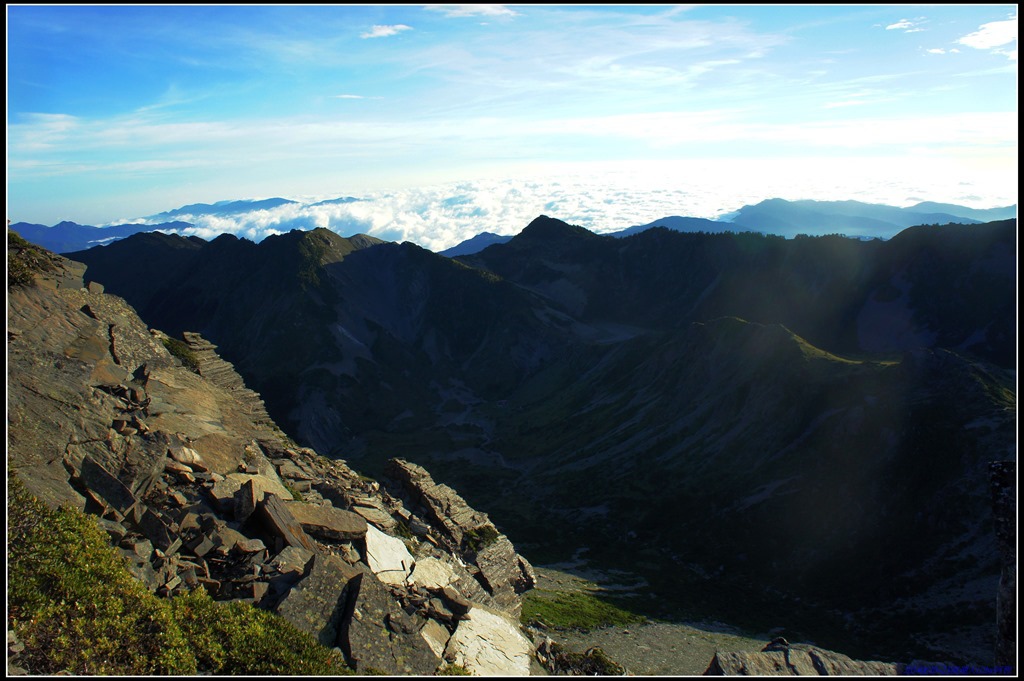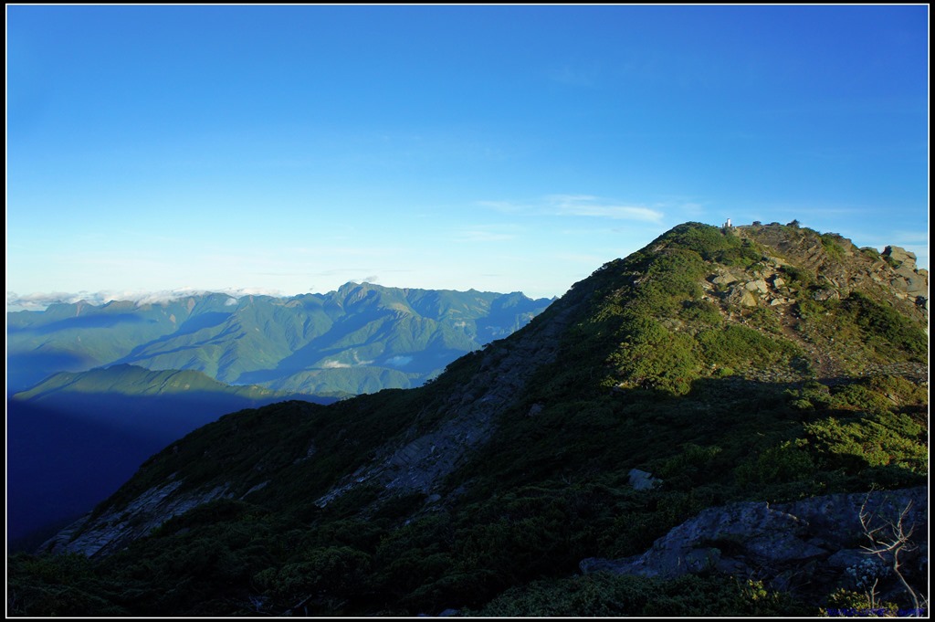 南湖山屋(3:10、21K、3398M )南湖主東鞍部叉路口(22.16K、3565M)南湖主峰(4:40、22.9K、3742M)南湖主東鞍部叉路口(6:40、23.7K、3565M)南湖東峰(7:35、25K、3637M)南湖山屋(9:00、26.6K、3398M)南湖山屋出發(10:25)南湖北峰下圈谷叉路(11:05、27.4K、3604M)雲稜山屋(16:20、35.9K、2605M)