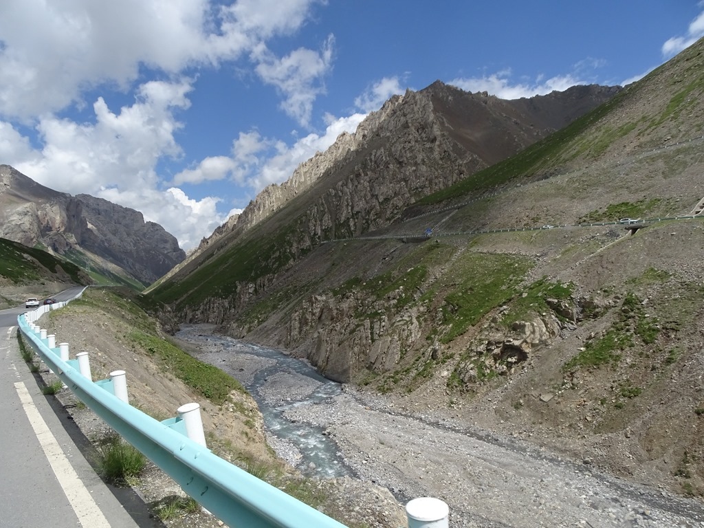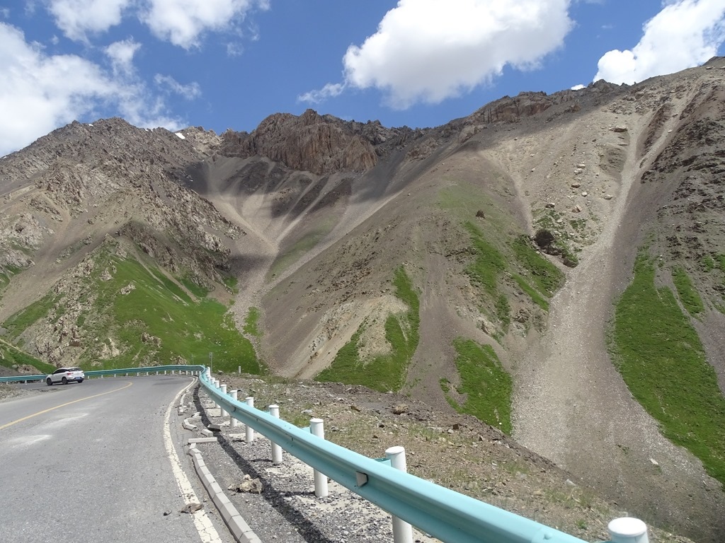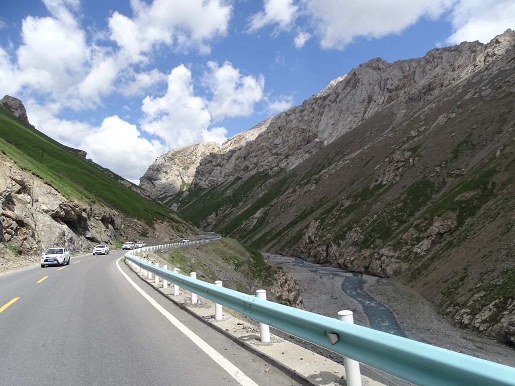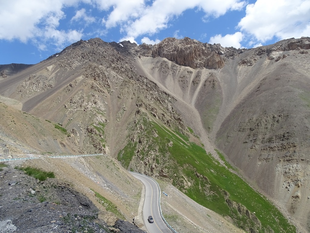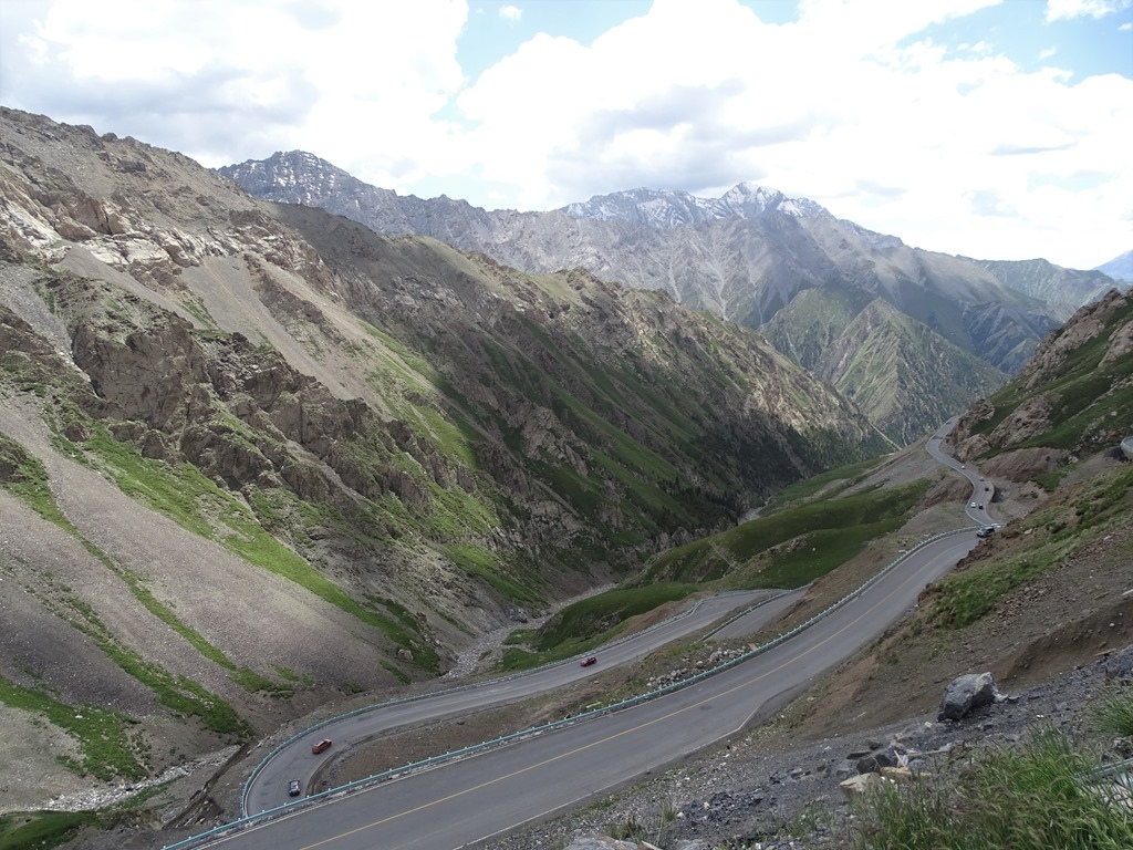 「獨庫公路」北起獨山子,南至庫車,全長561公里,橫亙崇山峻嶺,穿越深山峽谷,連通新疆中部之南、北疆,被譽為中國最美的公路,整條路線,有三分之一是懸崖絕壁,五分之一的地段處於高山永凍層,跨越了天山近十條主要河流,翻越終年積雪的四個冰達坂,由南而北,因為高度的急劇變化,從乾旱的沙漠戈壁、火焰似的紅褐山岩,到綠茵茵的草原曲河,再到冰寒的雪峰冰川,景色壯麗多變,燦爛奪目,主要景點有天山神秘大峽谷、大小龍池、巴音布魯克草原、那拉提草原、唐布拉草原、奎屯河大峽谷等等。之前北疆行,已經有走過獨庫公路北段(巴音布魯克至獨山子),這次南疆行,主要就是想看看中巴公路、沙漠公路及全程獨庫公路。