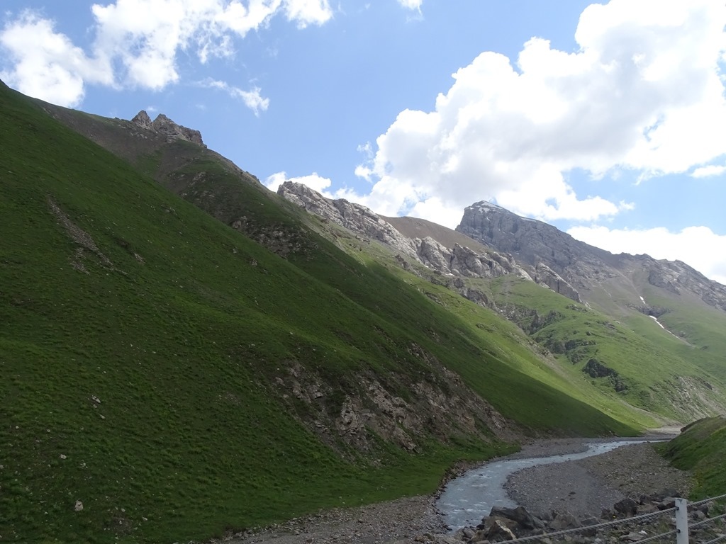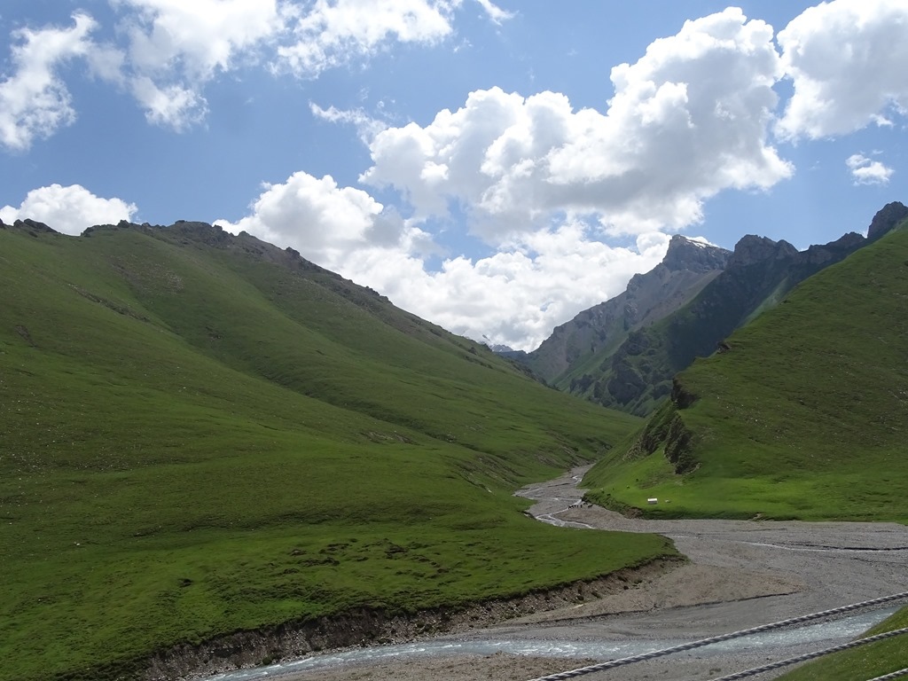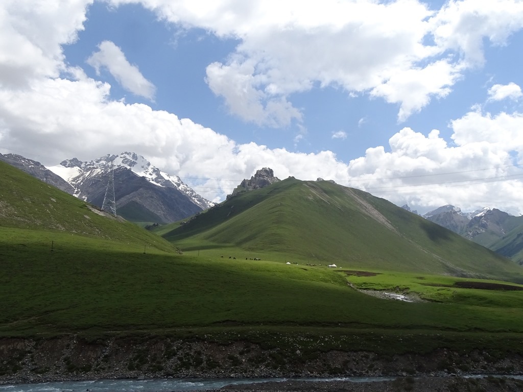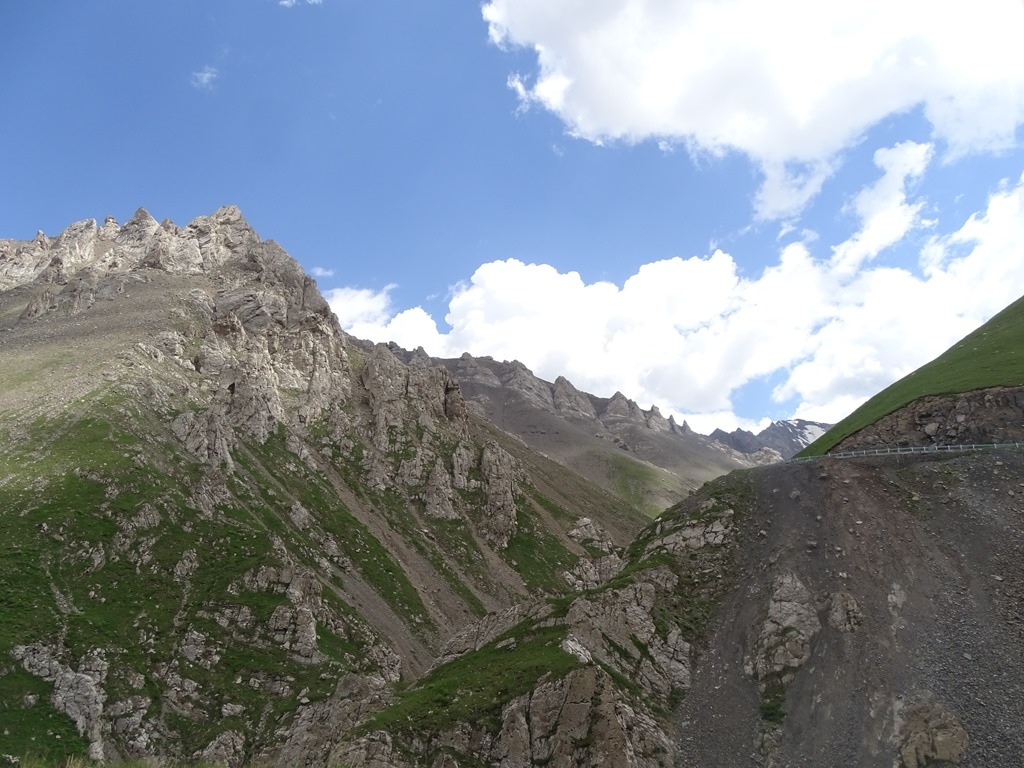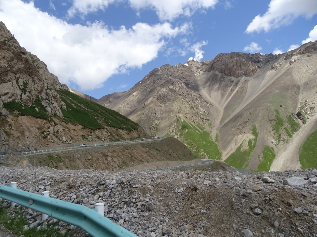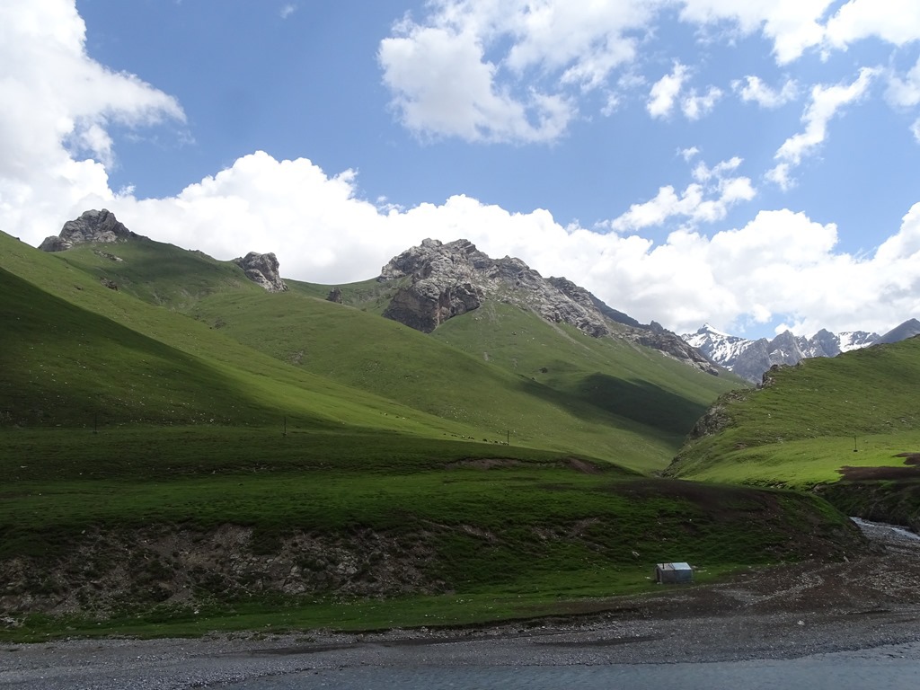 16日清晨從庫車出發,晚間住在喬爾瑪的哈薩克族氈房,中途會參觀天山神秘大峽谷、大小龍池、巴音布魯克,以及其他達坂景點,本篇介紹【大小龍池→天鵝湖自然保護區叉路口】之沿途景觀,此段一路攀升,穿越南天山海拔3700米的鐵里買提達坂,然後來到廣袤的巴音布魯克草原。
