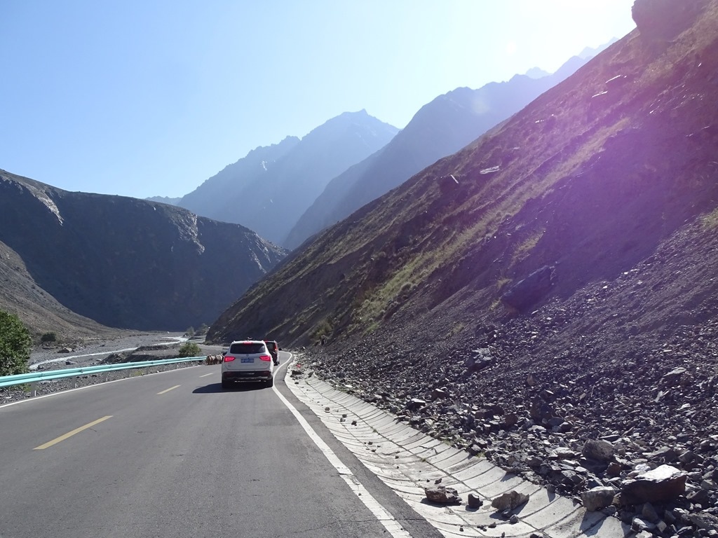 「獨庫公路」北起獨山子,南至庫車,全長561公里,橫亙崇山峻嶺,穿越深山峽谷,連通新疆中部之南、北疆,被譽為中國最美的公路,整條路線,有三分之一是懸崖絕壁,五分之一的地段處於高山永凍層,跨越了天山近十條主要河流,翻越終年積雪的四個冰達坂,由南而北,因為高度的急劇變化,從乾旱的沙漠戈壁、火焰似的紅褐山岩,到綠茵茵的草原曲河,再到冰寒的雪峰冰川,景色壯麗多變,燦爛奪目。